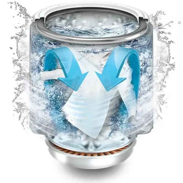 Pulsator and tub spin in opposite directions, generating strong water currents for thorough washing.